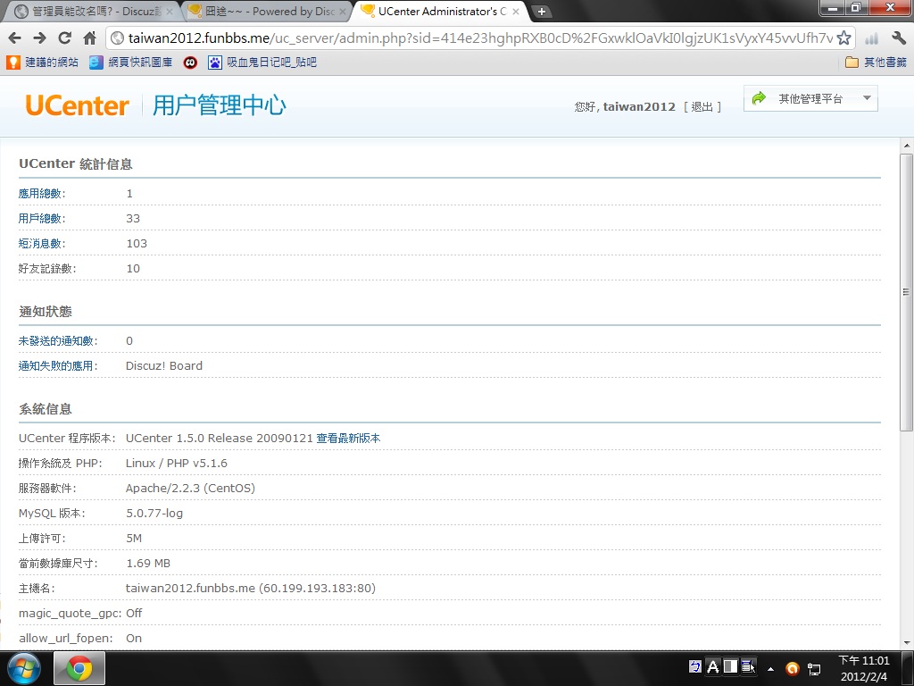 試試在網址後面加這個(粗體的那部份) /uc_server/admin.php?m=cache&a=update miss_lovekyu 發表於 2012-2-4 23:24