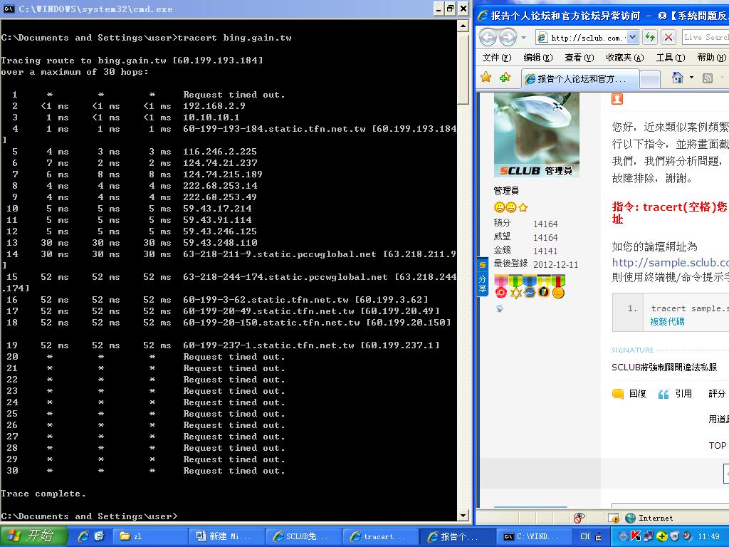 指令: tracert(空格)您的論壇網址
